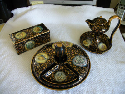 Title (ebay affiliate link): VINTAGE ANTIQUE 22K GOLD TRIM HAND PAINTED PORCELAIN ARDALT TOBACCO SMOKING SET