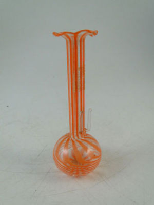 Vintage German Ribbon Glass Bud Vase Orange Swirl Place Holder Setting Mini