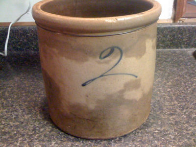 Antique Stoneware Salt Glaze 2 Gallon Crock Western Pottery