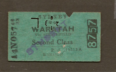 SYDNEY - WARATAH 1945 SYDNEY CITYRAIL DARK GREEN ISSUE RAILWAY TICKET
