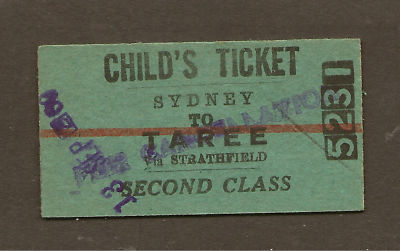 SYDNEY =- TAREE 1945 SYDNEY CITYRAIL CHILD DARK GREEN ISSUE RAILWAY TICKET