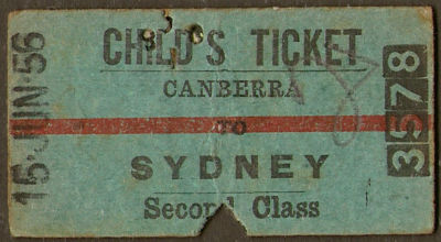 CANBERRA - SYDEY 1945 SYDNEY CITYRAIL DARK GREEN ISSUE RAILWAY TICKET