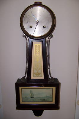 Title (ebay affiliate link): ANTIQUE 30" NEW HAVEN 8-DAY BANJO WALL CLOCK TALL SHIP