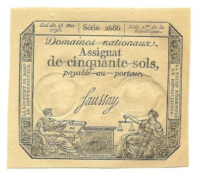 Title (ebay affiliate link): Original French Revolution era ASSIGNAT 50 Sols 1793 Crisp UNC! Look!