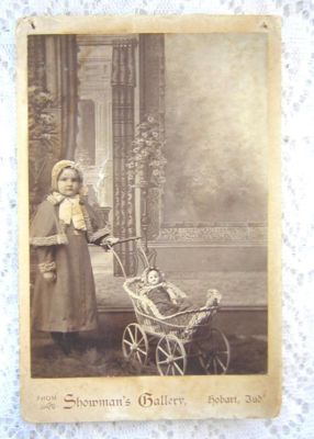 Title (ebay affiliate link): ANTIQUE Cabinet Photo, Girl, Wicker Buggy, 2 Dolls- Hobart, Indiana