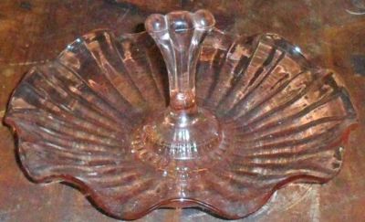 Title (ebay affiliate link): Vintage Scalloped Pink Depression Glass Center Handle Bon Bon Dish - 7" D