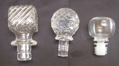 THREE HOLLOW GLASS BOTTLE OR DECANTER STOPPERS