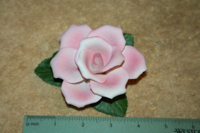 Beautiful Capodimonte pink rose on 3 leaves