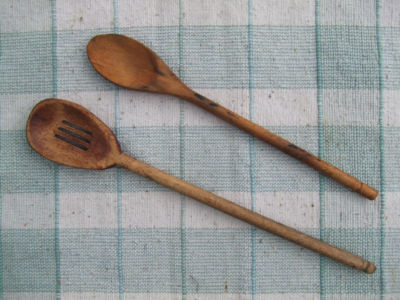 Title (ebay affiliate link): 2 Antique 19th Century Wooden Cooking Spoons 1 Slotted - Primitive Hand Carved
