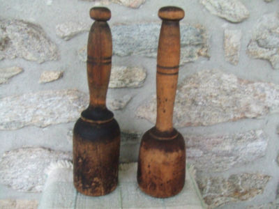 Title (ebay affiliate link): 2 Antique 18th Cent. Primitive Wooden Food Mashers Pestles 1 Piece Hand Carved
