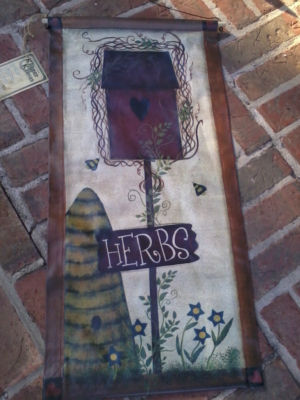 PRIMITIVE~"BIRDHOUSE W/HERBS" KLIPPER KANVAS W/ WOOD & METAL HANGER~NEW~