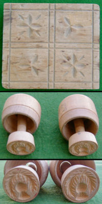 3 OLD WOOD BUTTER MOLDS