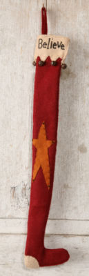 Title (ebay affiliate link): PRIMITIVE~CHRISTMAS STOCKING "BELIEVE" W/RUSTIC JINGLE BELLS~NEW~