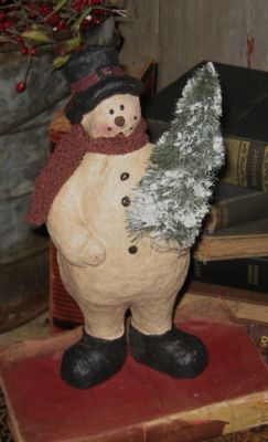 Title (ebay affiliate link): Top Hat SNOWMAN w/Bristle Christmas TREE*Statue*Papier Mache-Primitive Decor