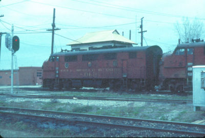 Gulf Mobile & Ohio, GM&O, F unit #806B at Wood River Tower, IL., 4/74