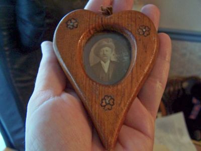 ANTIQUE MINIATURE ARTS CRAFTS HEART PICTURE FRAME - OAK