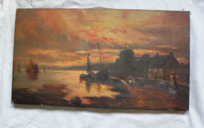 Title (ebay affiliate link): Beautiful Original Antique English ? Oil On Canvas Coastal Fishing Scene !!