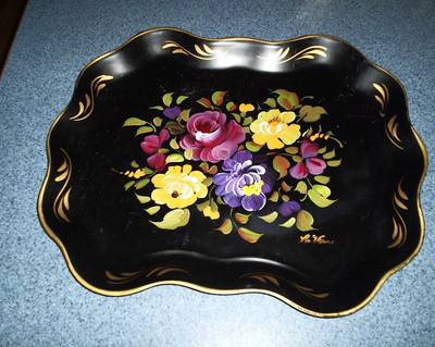 Title (ebay affiliate link): LRG Vintage metal Black NASHCO TOLEWARE TOLE TRAY flowers signed La Verne