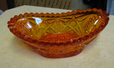 Title (ebay affiliate link): DEPRESSION GLASS AMBERINA OVAL GLASS DIAMOND POINT CANDY DISH DAISY & BUTTON
