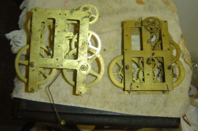 pair of american antique clock works for parts