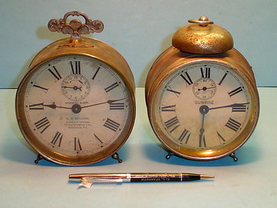 Title (ebay affiliate link): VTG ANTIQUE 1907 SPASMODIC ALARM & 1901 SUNRISE ALARM CLOCK~PARTS OR REPAIR
