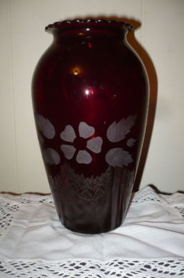 Title (ebay affiliate link): 9" VASE ROYAL RUBY RED DEPRESSION ANCHORGLASS CORNFLOWER CUT ORIGINAL LABEL