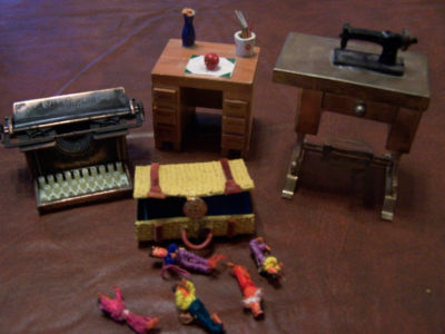 Title (ebay affiliate link): DOLLHOUSE FURNITURE & ACCESSORIES-DESK/SUITCASE/ANTIQUE TYPEWRITER/SEW MACHIN