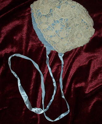 Antique Baby Bonnet Irish Crochet Lace Raised Flowers