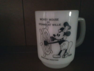 Title (ebay affiliate link): Vintage Anchor Hocking Mickey Mouse as Steamboat Willie Pepsi Milk glass