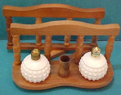 Milk white glass vintage salt and pepper shaker pair w adjustable napkin holder