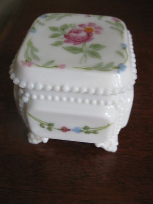 Milk White Glass Box, Hand-Painted Flowers, Beautiful!!