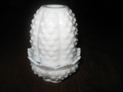 Fenton White Milk Glass Hobnail Fairy Light Lamp - marked