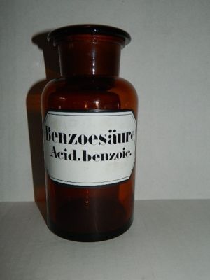 Title (ebay affiliate link): Antique German Amber Glass Apothecary Bottle Jar w Paper Label Benzoesaure