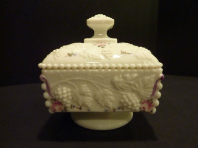 Title (ebay affiliate link): Westmoreland Milk Glass Beaded Paneled Grape Hand Painted Honey/Candy Dish