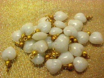 Vtg 25 MILK GLASS WHITE HEART BEADS-DEAD STOCK WQW