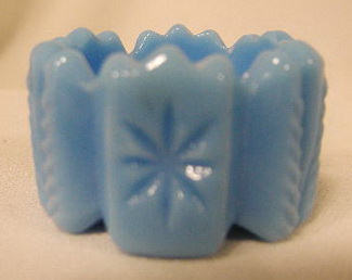 V Salt Dip Open Cellar Blue Milk Glass W/Salt Spoon
