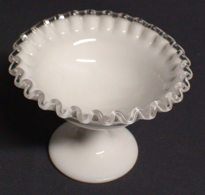 Title (ebay affiliate link): Vintage Fenton Milkglass Silver Crest Petticoat Pedestal Bowl Unique Size! Nice