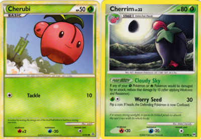 Pokemon Platinum Arceus Rare Cherrim 15/99 and HS Unleashed Common Cherubi MINT