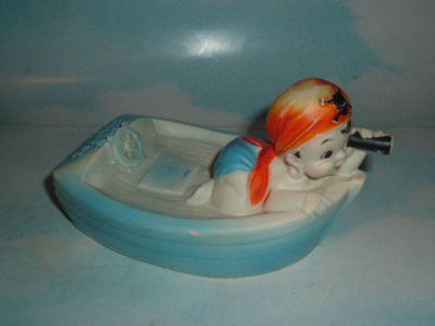 1960 Alanjay Rubber Squeeze Toy, Pirate Boy in Boat