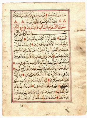 BEAUTIFUL QURAN LEAF MANUSCRIPT 1237 AH (1821 AD):