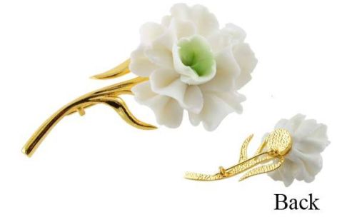 14KT Gold EP White Capodimonte Fantasy Flower Pin