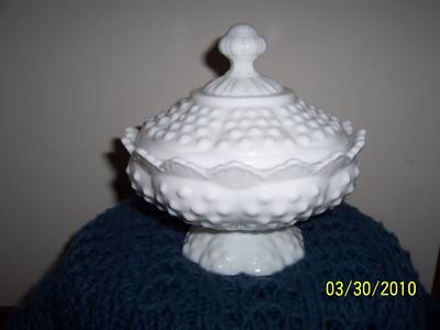 Fenton White Covered Candy Dish: Hob Nail Milk Glass
