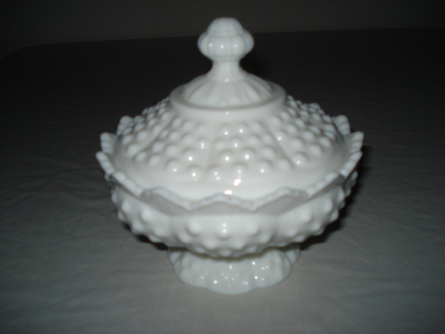 Fenton Art Glass Milk White Hobnail Covered Candy Dish