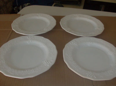 Title (ebay affiliate link): Lot of (4) White Milk Glass Harvest Grape 8 Inch Salad Plates