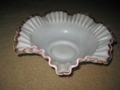 Vintage Fenton Pink Crest Milk Glass Bowl Epergne