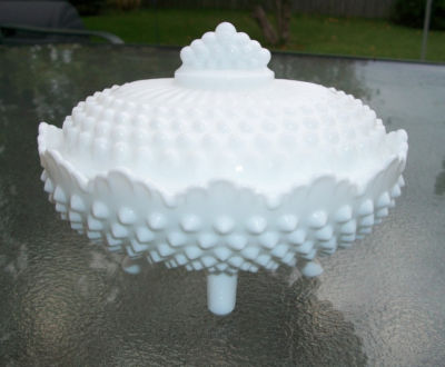 Title (ebay affiliate link): Fenton Milk Glass Hobnail Four Footed Dish-With Lid-Signed Fenton-BEAUTIFUL!!