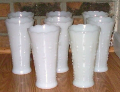 8 Piece Lot of Matching Hobnail Milkglass Vases