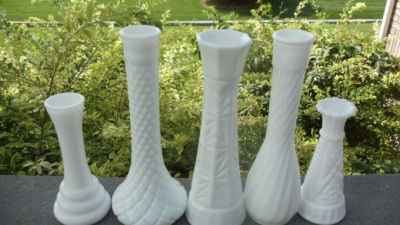 Title (ebay affiliate link): Assorted Vintage White Milk Glass Flower/Bud VASES~All Different~Set of 5