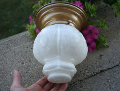 Title (ebay affiliate link): Elegant White Milk Glass Embossed Globe Shade Ceiling Hall Light Fixture Vintage