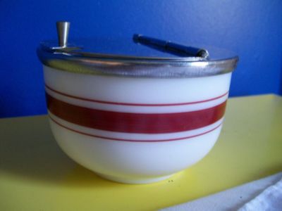 Title (ebay affiliate link): Vintage MEDCO White Milk Glass & Satinless Steel Condiment Bowl~Made in USA